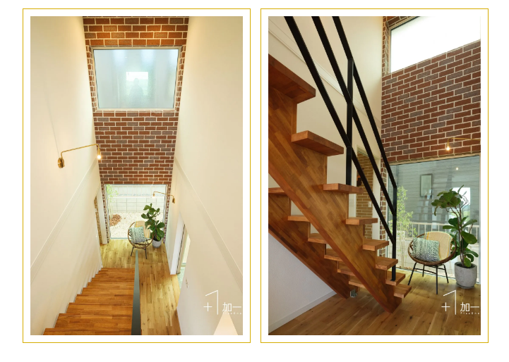 樓梯的主材以木板為主,墻磚選用加一陶瓷濕式復古磚PGO230系列;復古與現(xiàn)代兩種元素的自然融合,呈現(xiàn)簡約時尚的休閑空間;在閑暇的休息時刻泡上一杯咖啡,倚靠落地窗,沐浴在陽光中,享受難得的愜意時光。