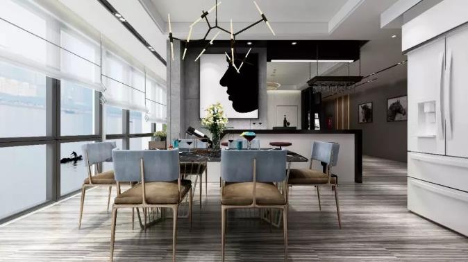 霧霾藍(lán)絲絨座椅,在黑白基調(diào)的家中,顯得高貴典雅。