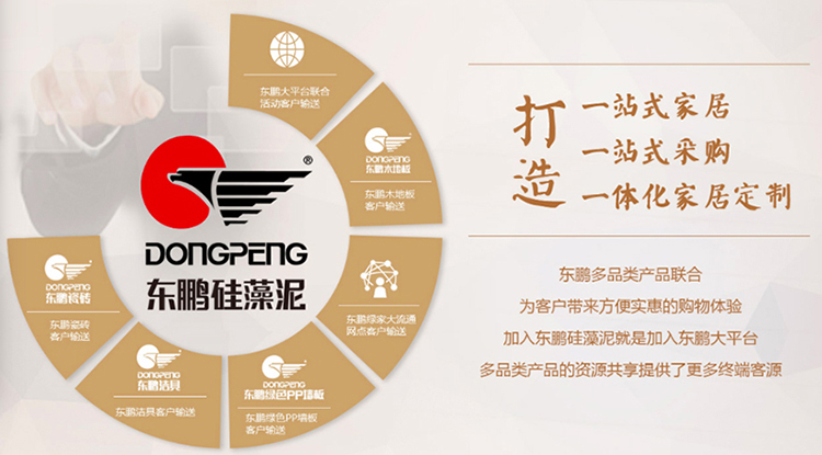 東鵬瓷磚,東鵬潔具,東鵬涂料、瓷磚等大流通產(chǎn)品、木地板多品類(lèi)產(chǎn)品聯(lián)合,加入東鵬大平臺(tái),資源共享,渠道共榮。