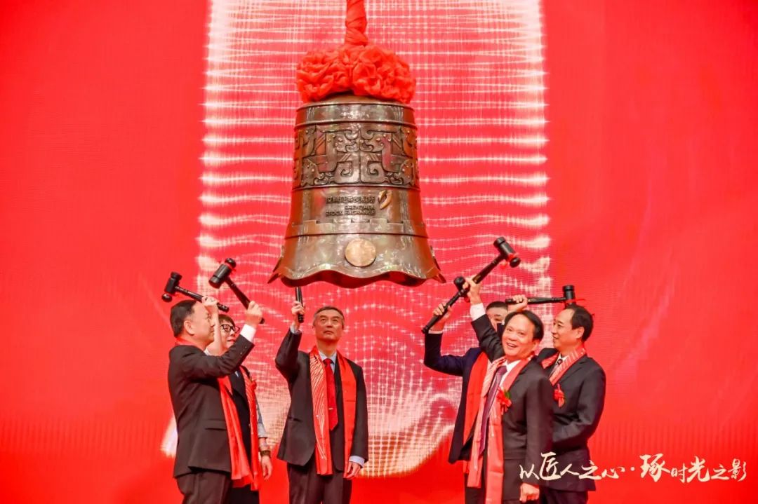 緊接著,由東鵬控股董事長(zhǎng)何新明、清遠(yuǎn)市委常委、常務(wù)副市長(zhǎng)呂成蹊、佛山市副市長(zhǎng)趙海、中國(guó)建筑衛(wèi)生陶瓷協(xié)會(huì)會(huì)長(zhǎng)繆斌、東鵬優(yōu)秀經(jīng)銷商代表伍鴻達(dá)、東鵬核心技術(shù)骨干代表姜安寧共同敲響開(kāi)市寶鐘。